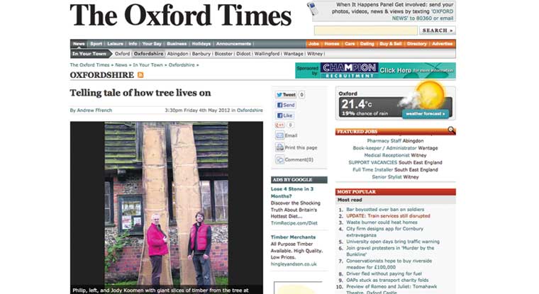 The Oxford Times published an article on our exhibition theme, click here to read the article "Telling Tale of How Tree Lives On "