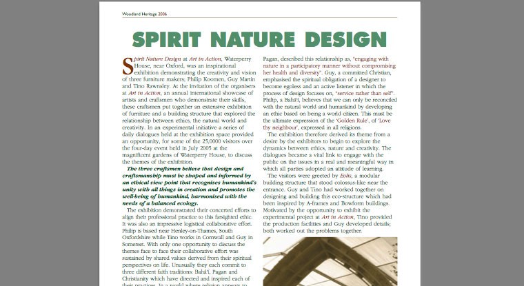 Woodland Heritage magazine 2005 download pdf Philip Koomen Furniture: Wheelers Barn, Checkendon, South Oxfordshire, RG8 ONJ Tel: 01491 681122 Email: furniture@philipkoomen.co.uk