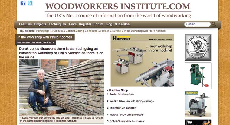 Woodworkers Institute Article - "In the Workshop with Philip Koomen"