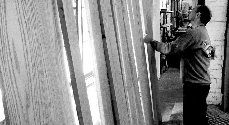 The journey to find the right wood starts with a visit to a woodland or timber yard. It is only when a log is being cut at the sawmill that the grain is revealed and the potential known. Once the log is sawn to a range of thicknesses it is delivered to the workshop where it can air-dry. This stage can take from one to four years ... Next